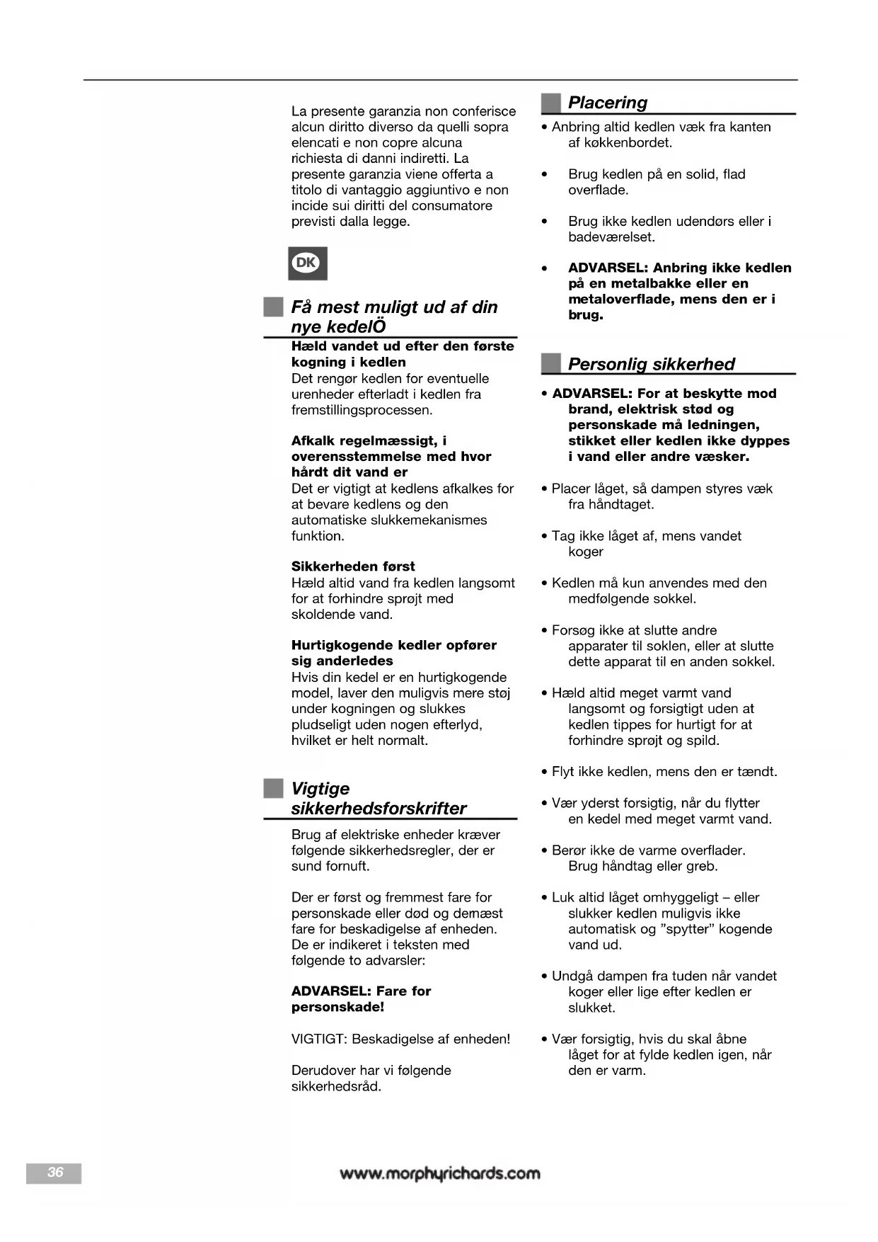 Téléchargez la notice de votre Elkedel au format PDF gratuitement ! Retrouvez votre notice 43687 - MORPHY RICHARDS et reprennez votre appareil électronique en main. Sur cette page sont publiés tous les documents nécessaires à l'utilisation de votre appareil 43687 de la marque MORPHY RICHARDS.
