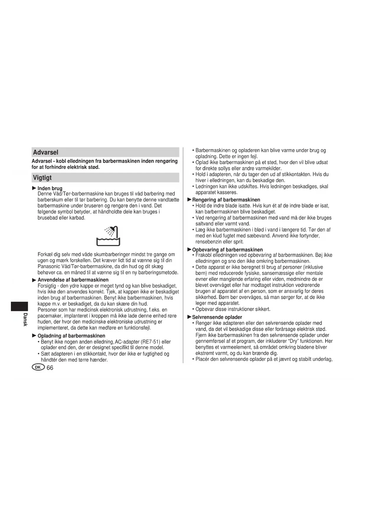Ved rengøring af barbermaskinen med vand må der ikke bruges