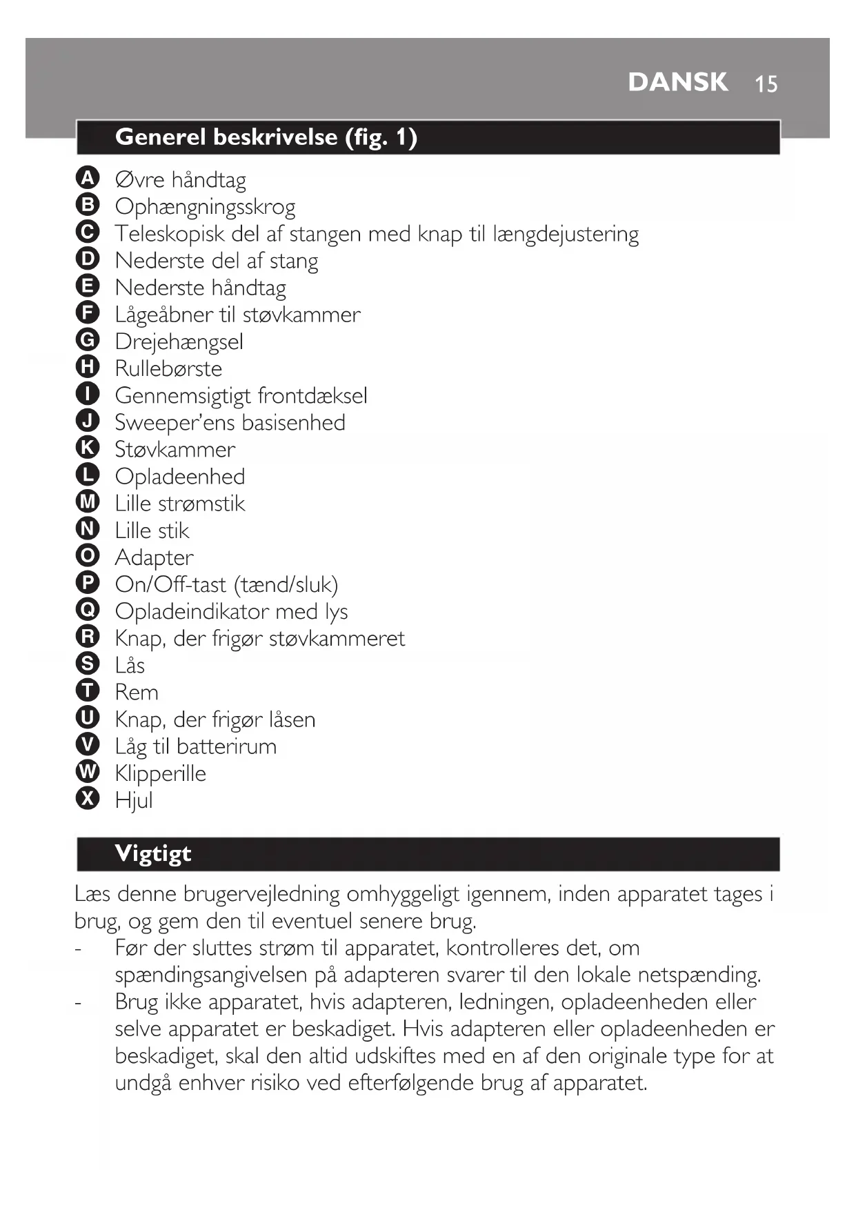 Brug ikke apparatet, hvis støvkammeret eller rullebørsten ikke er