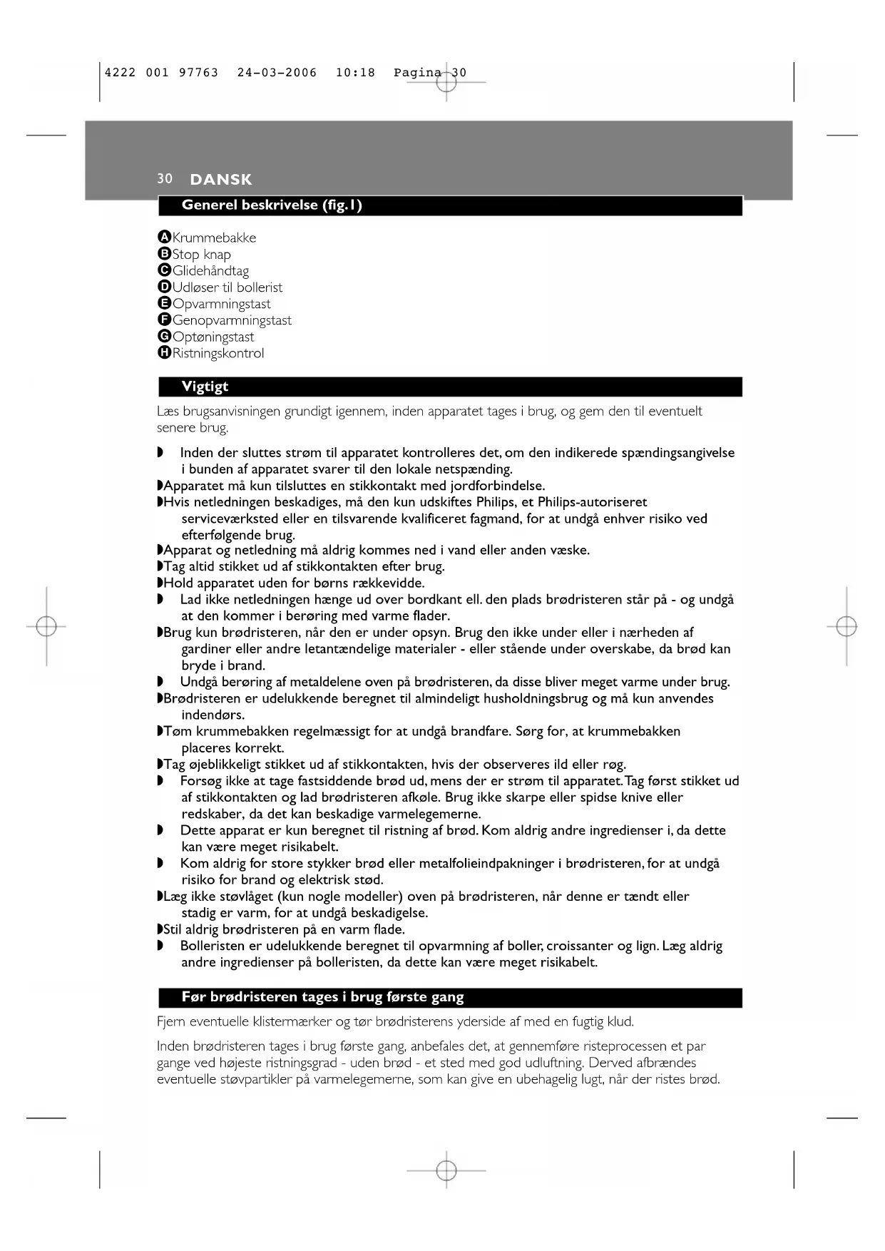 ◗ Dette apparat er kun beregnet til ristning af brød. Kom aldrig andre ingredienser i, da dette
