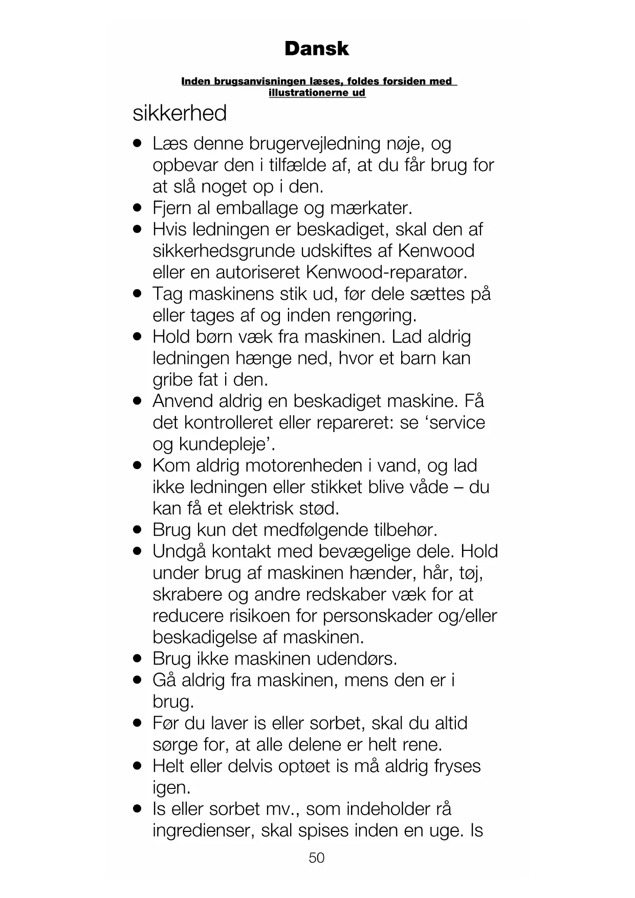 50 Inden brugsanvisningen læses, foldes forsiden med illustrationerne ud Dansksmager bedst, når den er frisk, så den må