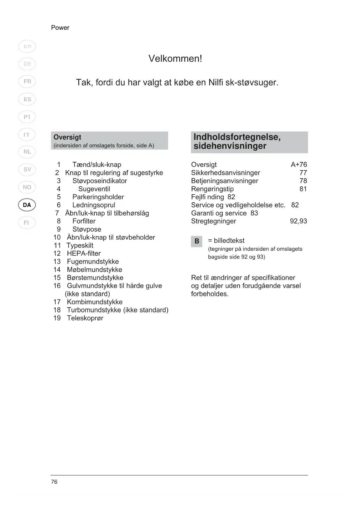 Power Special - Støvsuger NILFISK - Notice d'utilisation et mode d'emploi gratuit