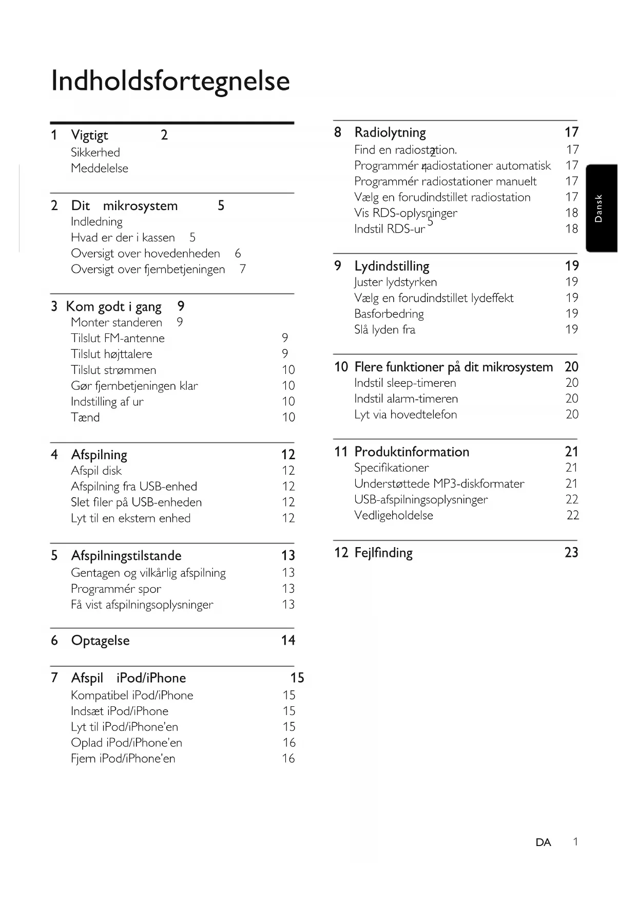 Hvis der opstår fej på apparatet, bør du kontrollere følgende punkter, inden du bestiller reparation. Hvis der fortsat er problemer, skal du gå til Philips' websted (www.philips.com/support). Hav dit apparat, modelnummer og serienummer iærheden, när du kontakter Philips.