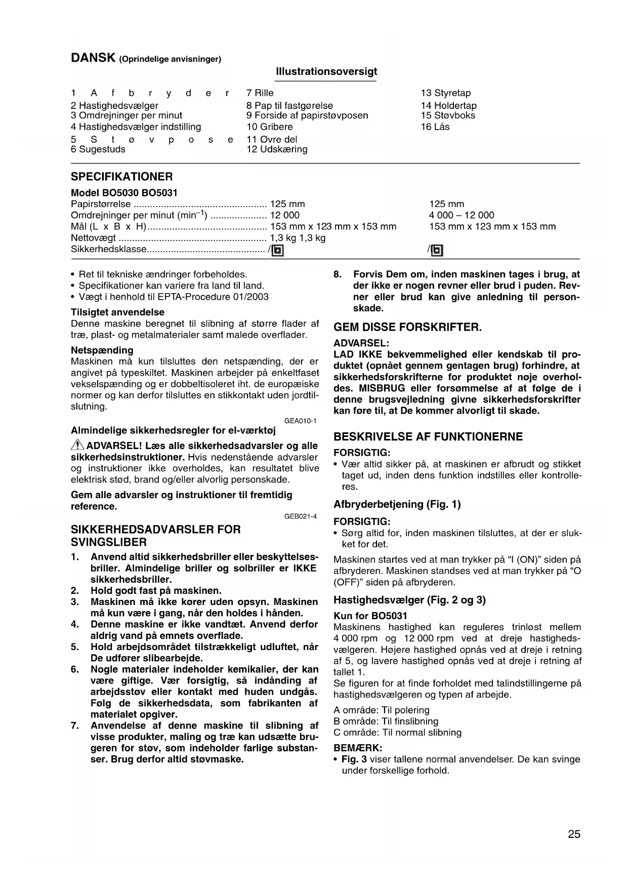 ADVARSEL! Læs alle sikkerhedsadvarsler og alle