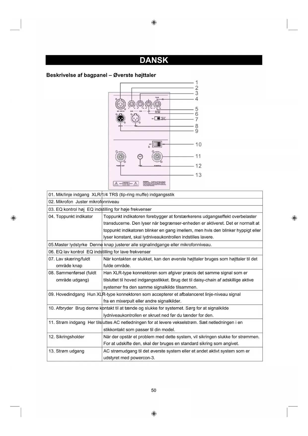 13. Strøm udgang AC strømudgang til det øverste system eller et andet aktivt system som er