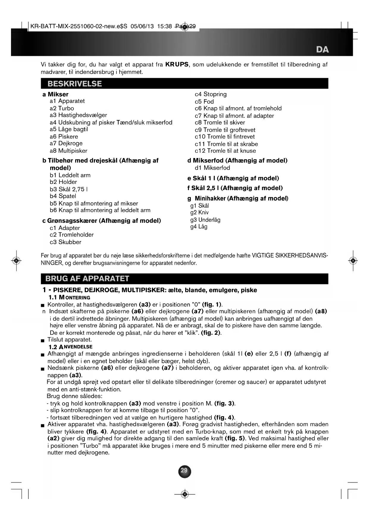 NINGER, og derefter brugsanvisningerne for apparatet nedenfor. KR-BATT-MIX-2551060-02-new.e$S 05/06/13 15:38 Page29DA