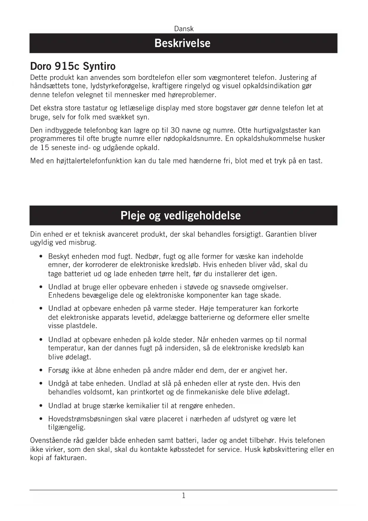 Syntiro 915c - Telefon DORO - Gratis brugsanvisning og manual