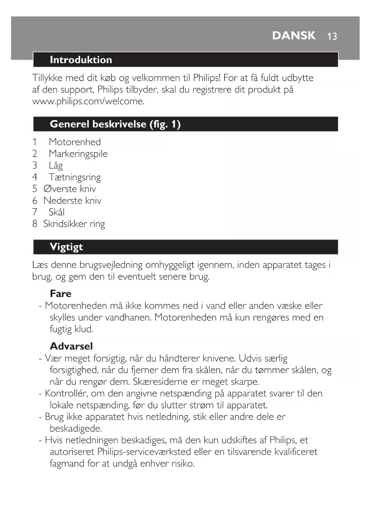 Tillykke med dit køb og velkommen til Philips! For at få fuldt udbytte