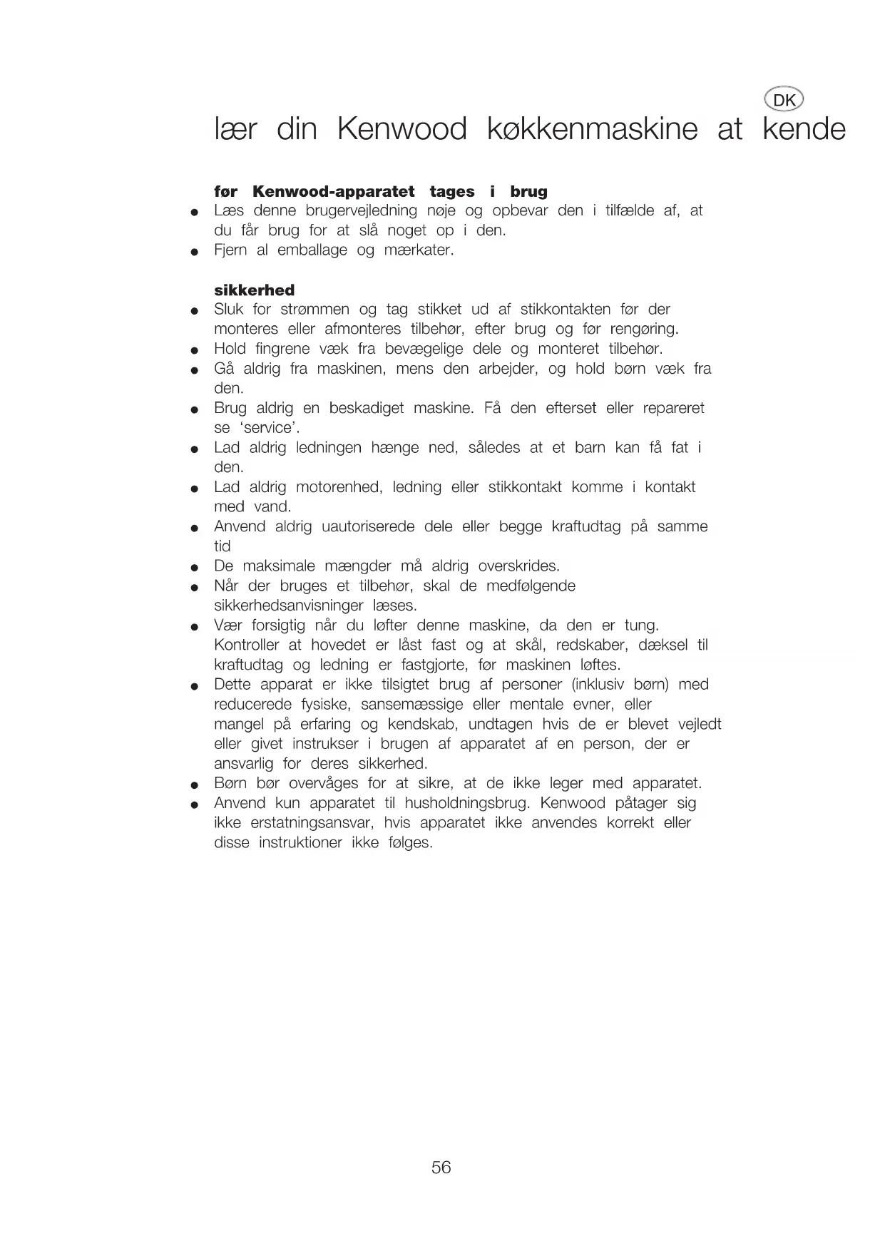 Bruk bare apparatet til dets tiltenkte hjemlige bruk. Kenwood frasier