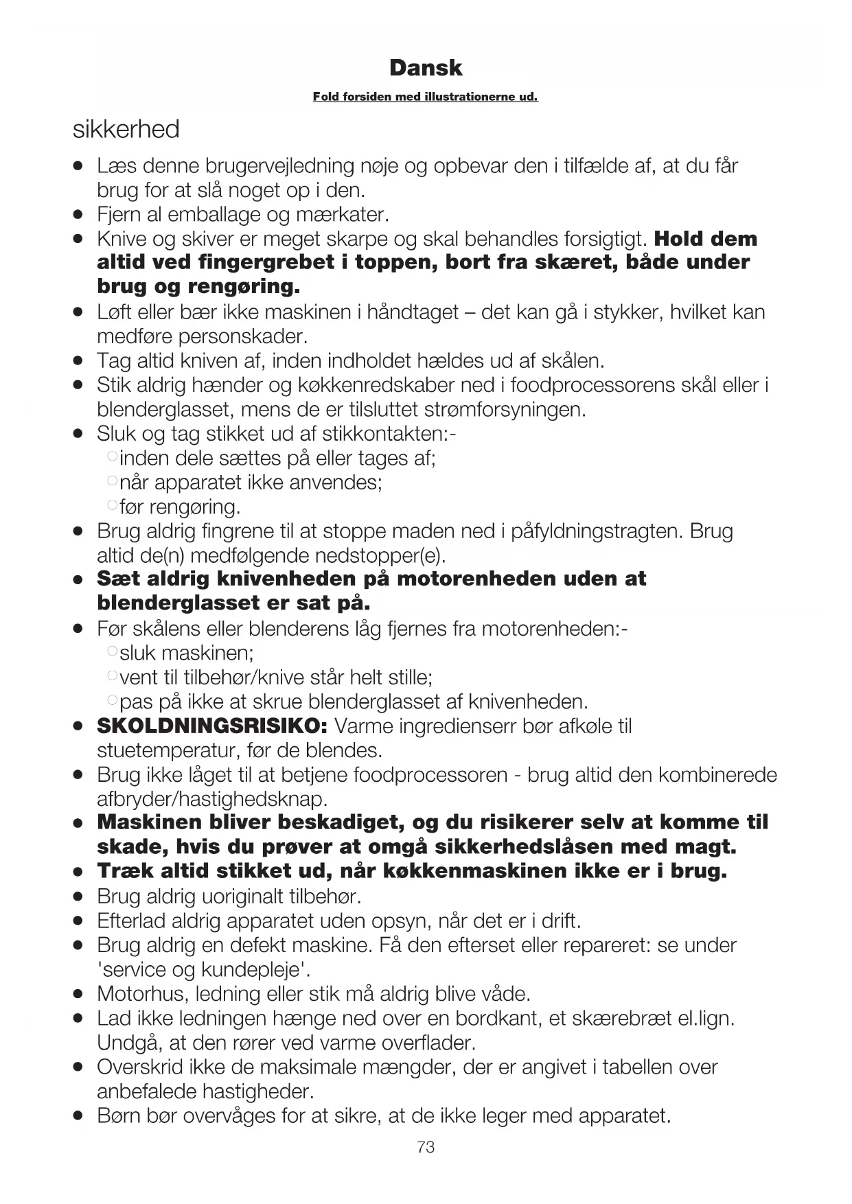 G Misbrug af foodprocessoren/blenderen kan føre til personskade.