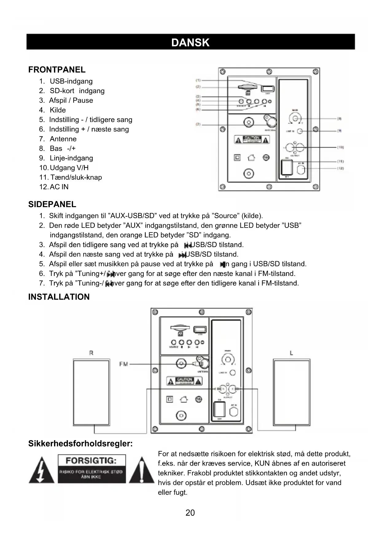 5. Afspil eller sæt musikken på pause ved at trykke på en gang i USB/SD tilstand.