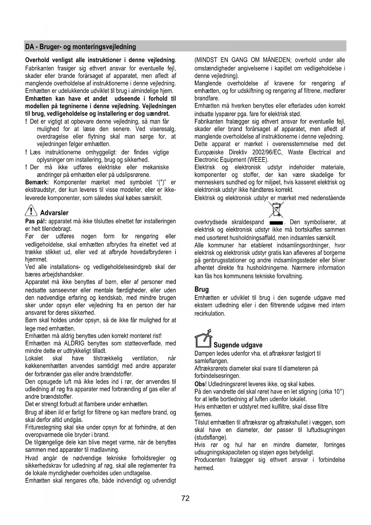 Emhætten må hverken benyttes eller efterlades uden korrekt