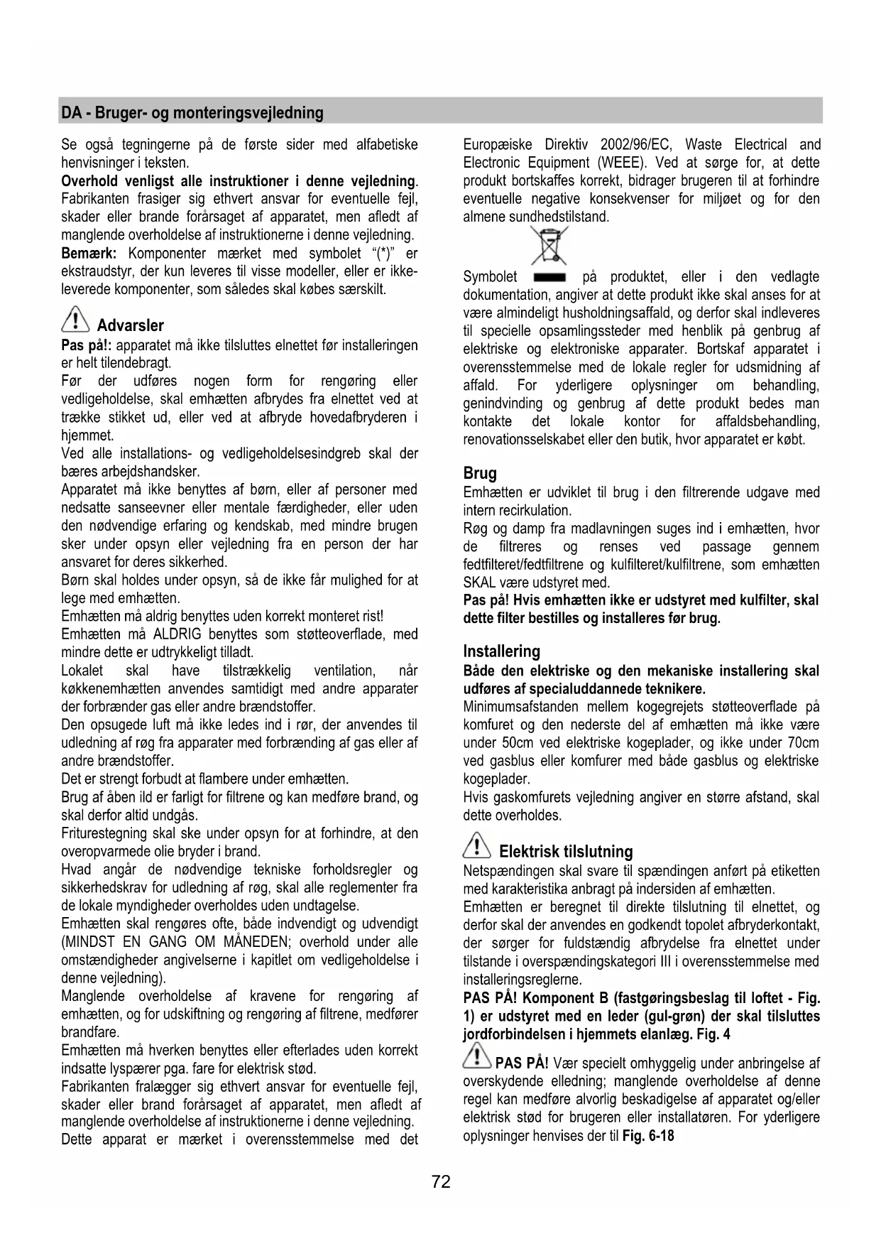Emhætten må hverken benyttes eller efterlades uden korrekt