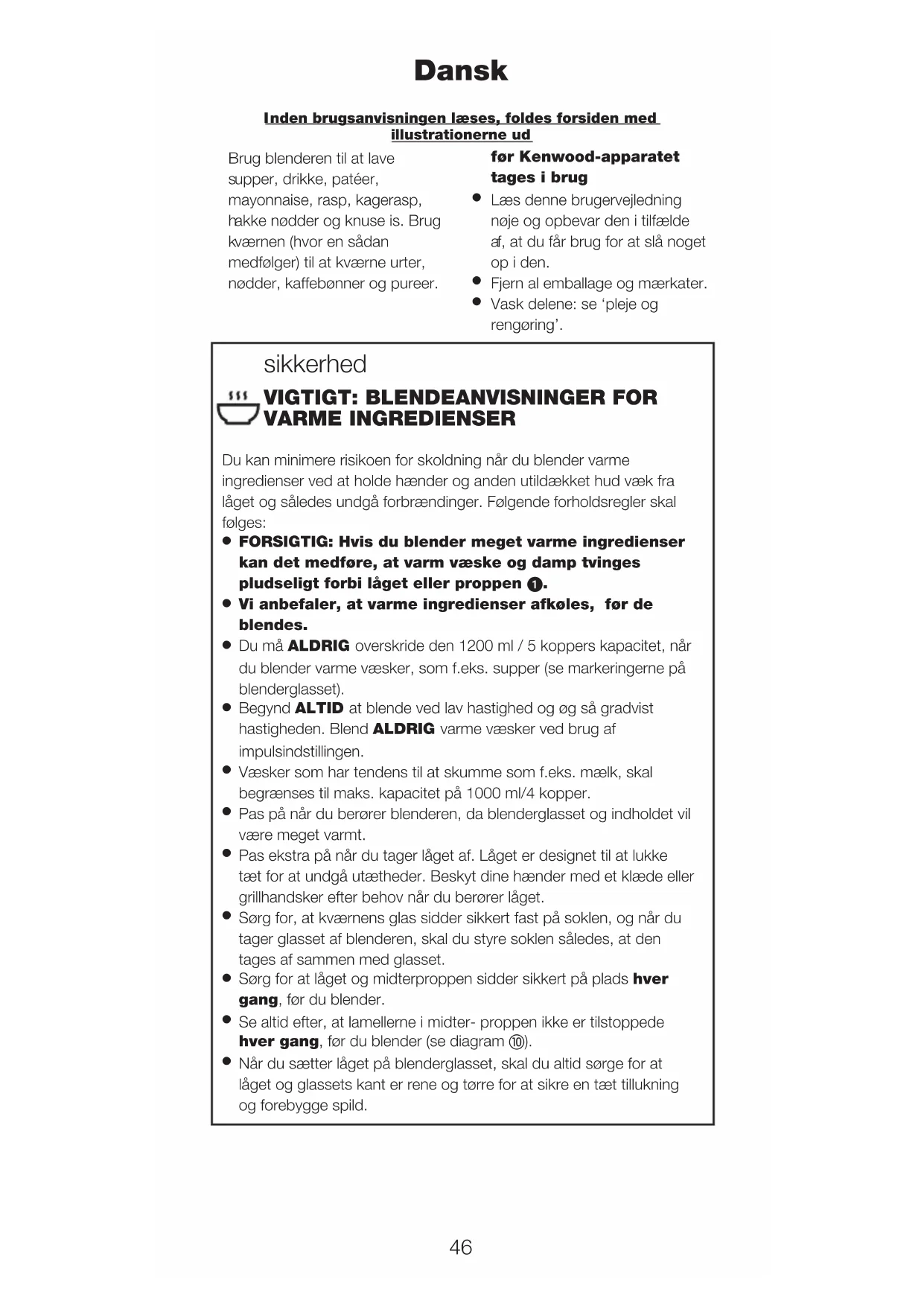 hastigheden. Blend ALDRIG varme væsker ved brug af