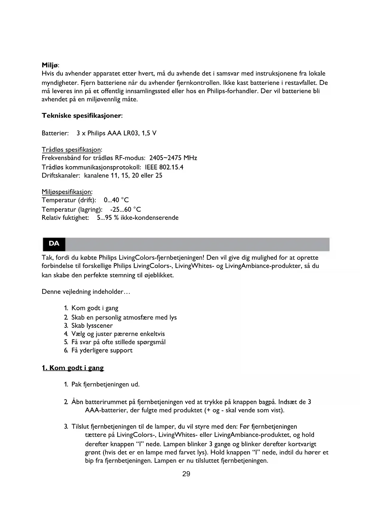 DA Tak, fordi du købte Philips LivingColors-fjernbetjeningen! Den vil give dig mulighed for at oprette