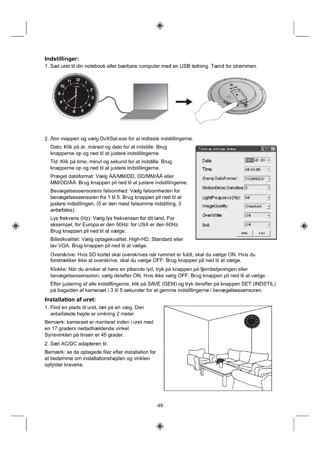 Bemerk: se de optagede filer after installation for at bedomme om installationshjden og vinklen opfylder kravene.