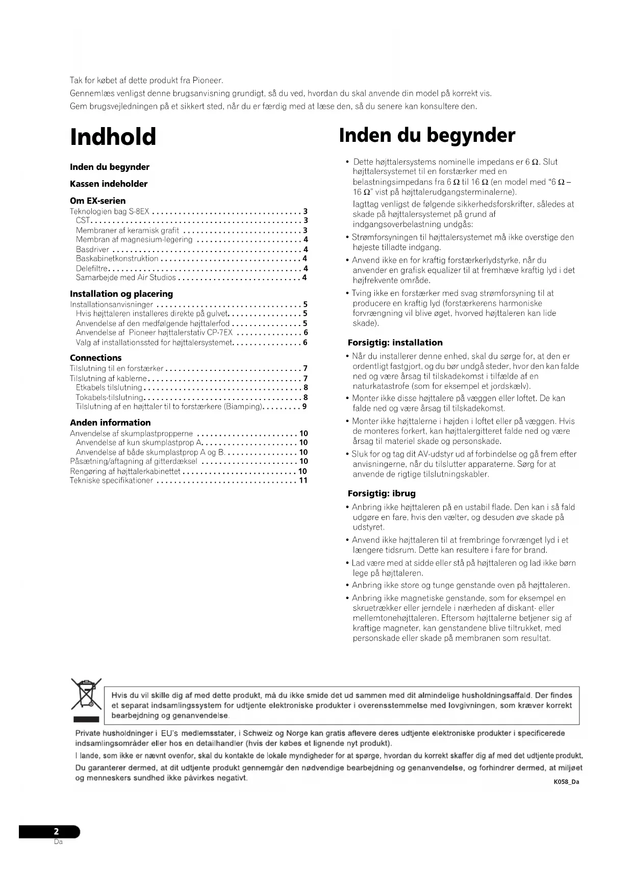 Téléchargez la notice de votre Højttaler au format PDF gratuitement ! Retrouvez votre notice S8EXW - PIONEER et reprennez votre appareil électronique en main. Sur cette page sont publiés tous les documents nécessaires à l'utilisation de votre appareil S8EXW de la marque PIONEER.