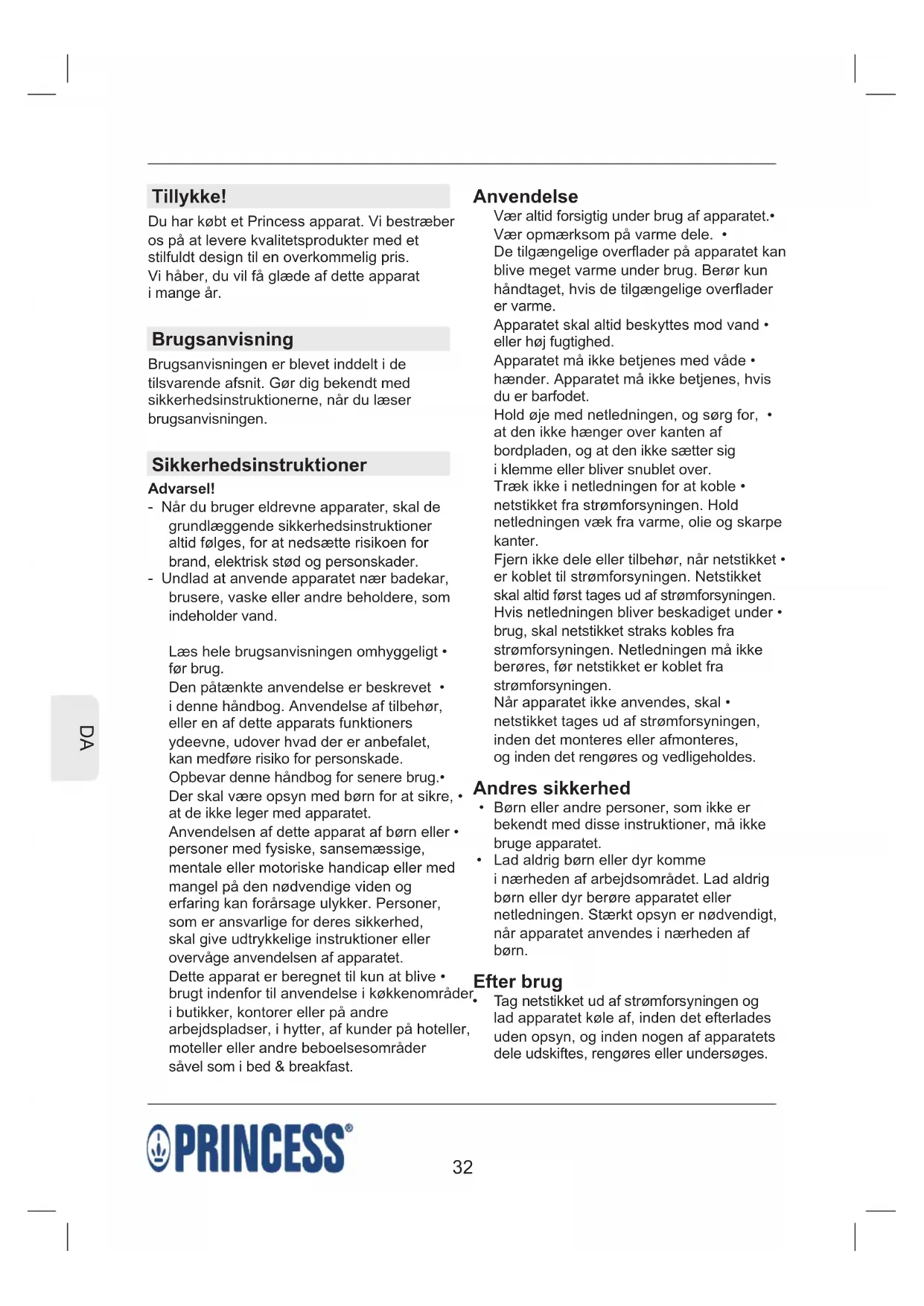 BRUGSANVISNING 232613 PRINCESS