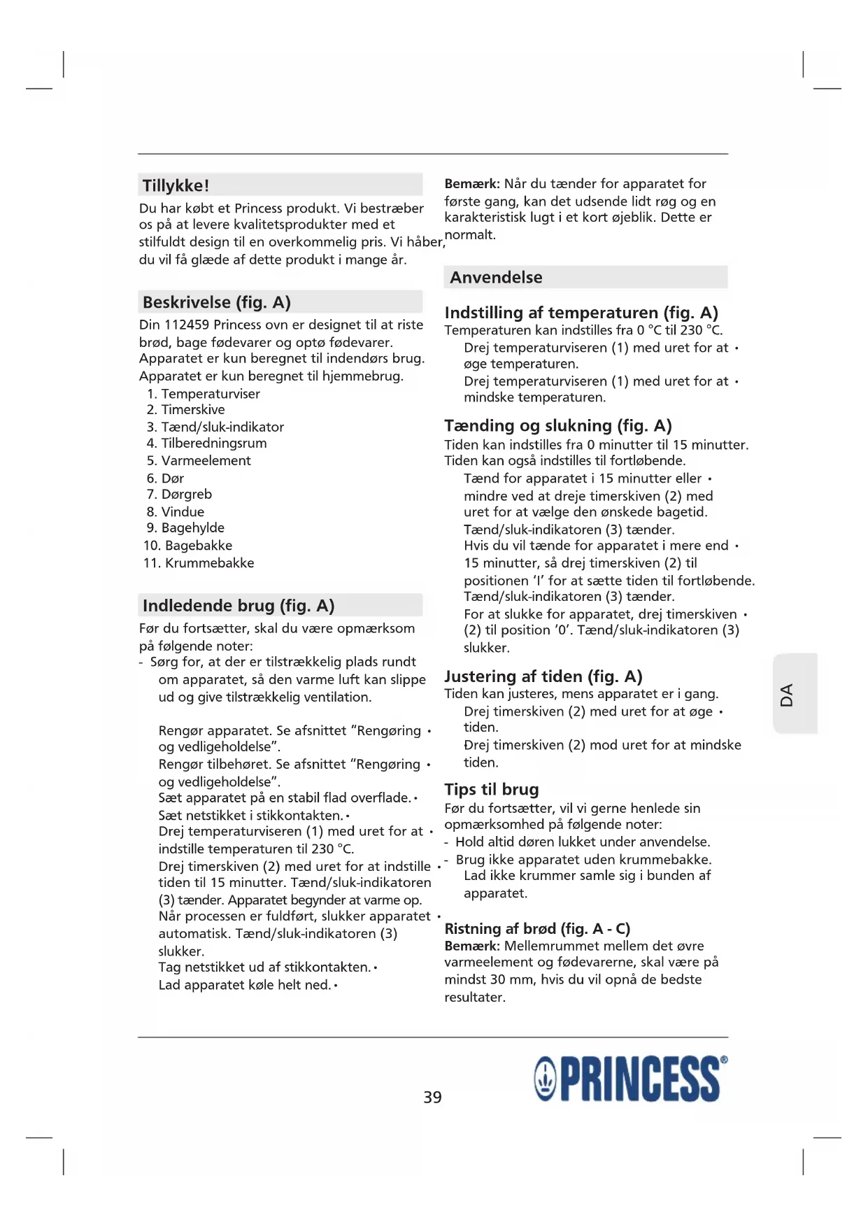 BRUGSANVISNING 112459 PRINCESS