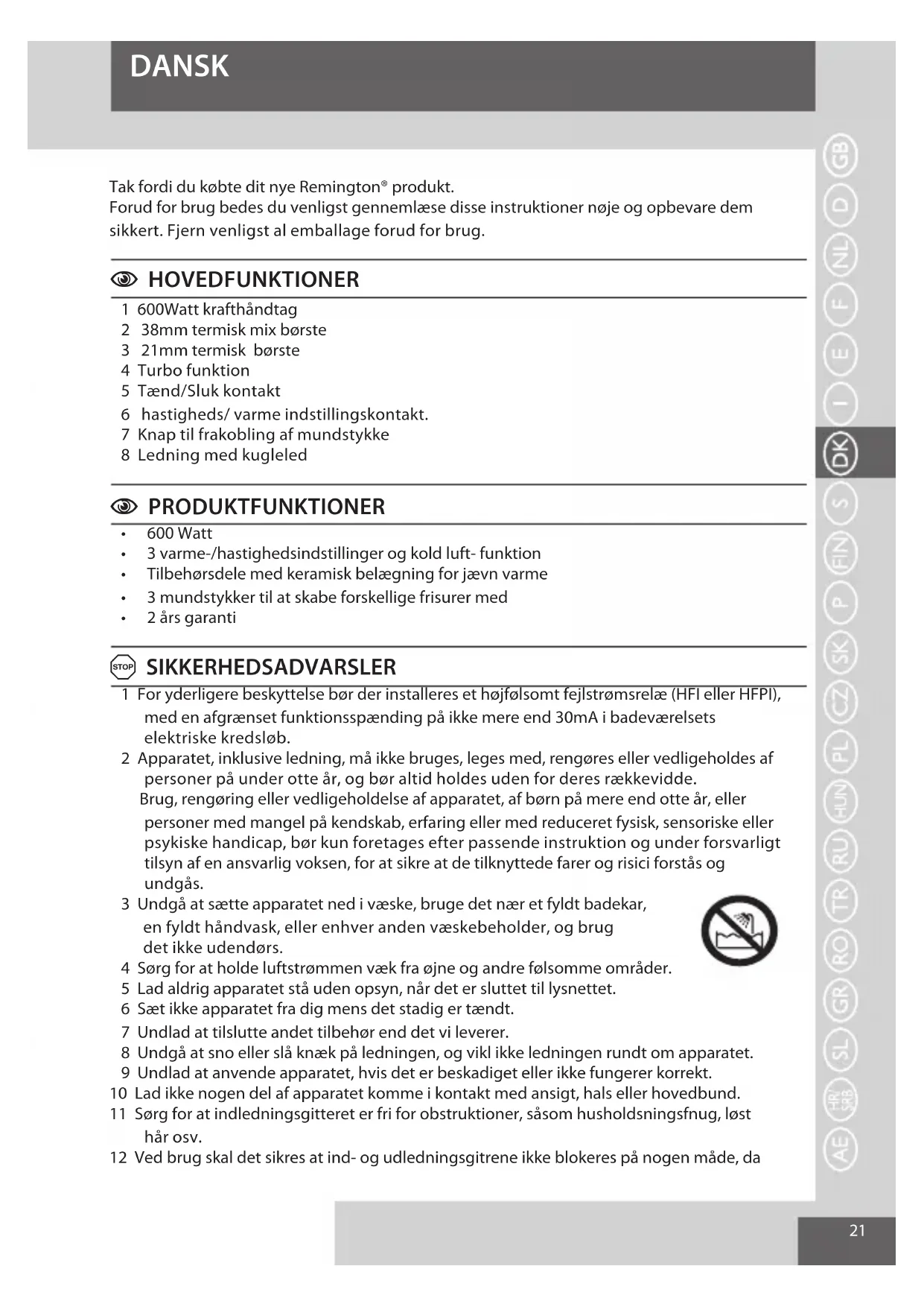 DANSK Tak fordi du købte dit nye Remington® produkt.