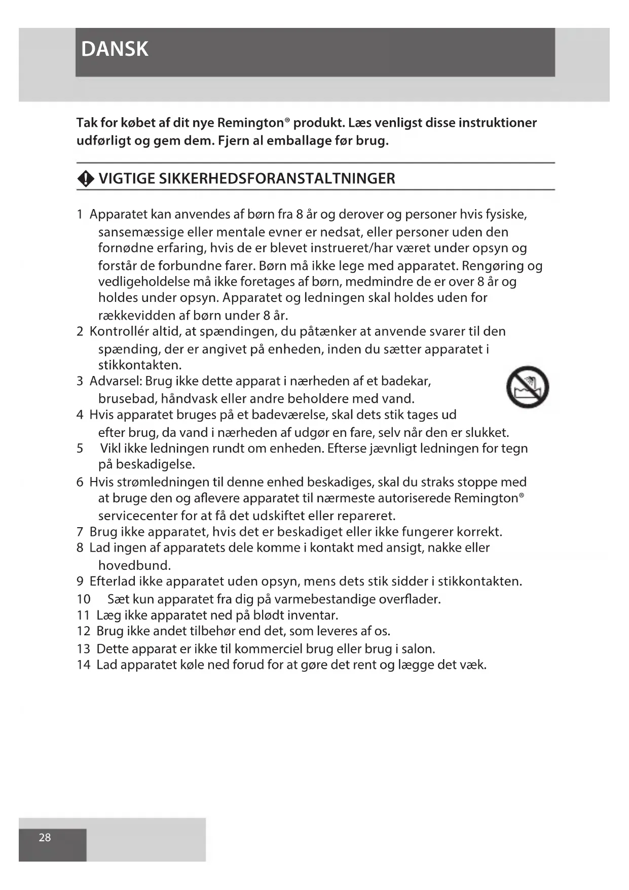 Tak for købet af dit nye Remington® produkt. Læs venligst disse instruktioner