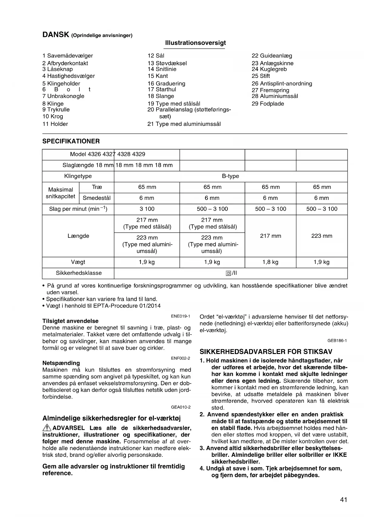 el-værktøj. GEB186-1 SIKKERHEDSADVARSLER FOR STIKSAV