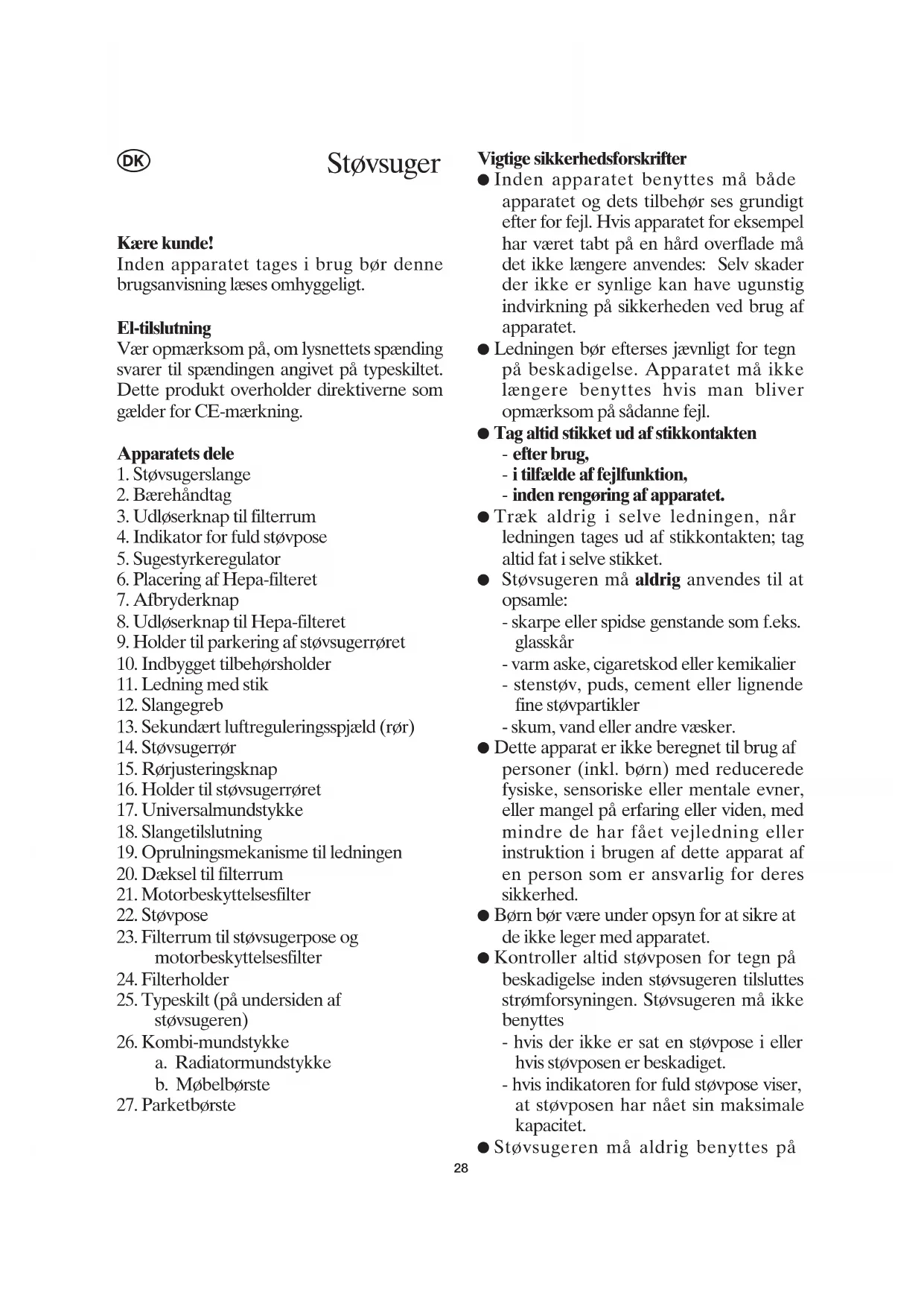 strømforsyningen. Støvsugeren må ikke