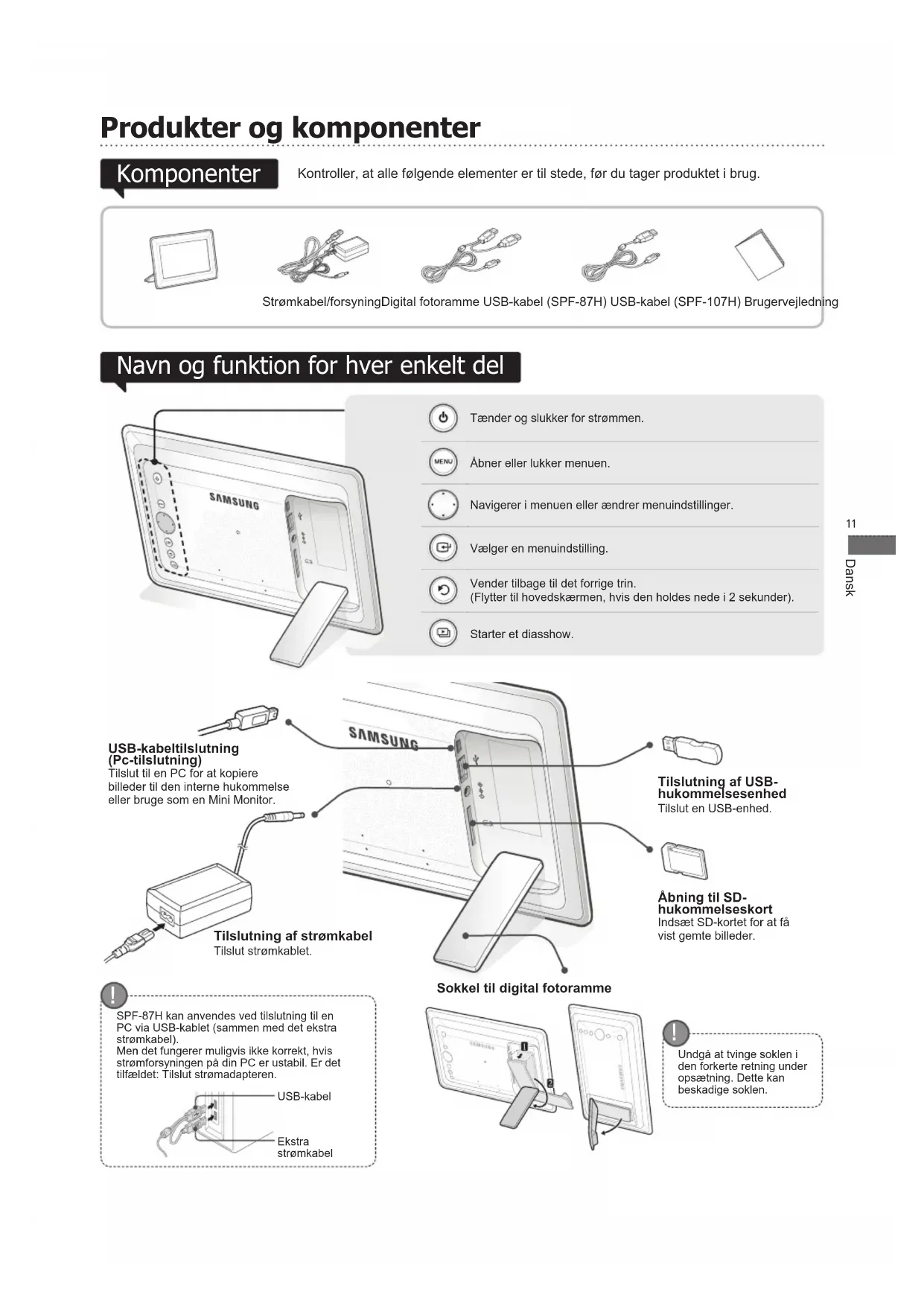 SPF87H - Digital fotoramme SAMSUNG - Gratis brugsanvisning og manual