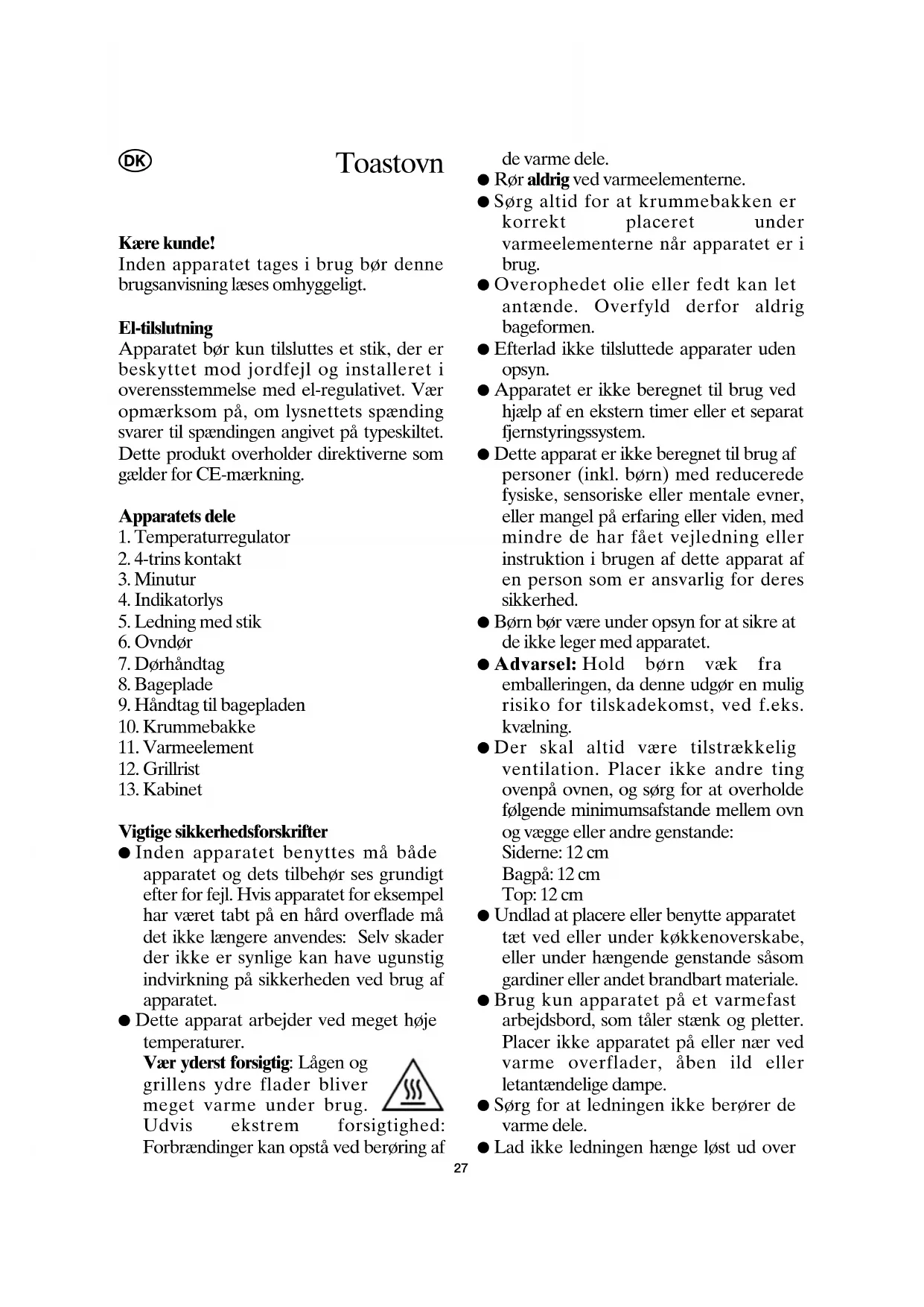 - Bagepladen og grillristen kan rengøres med varmt vand og et mildly opvaskemiddel, eller i opvaskemaskine.
