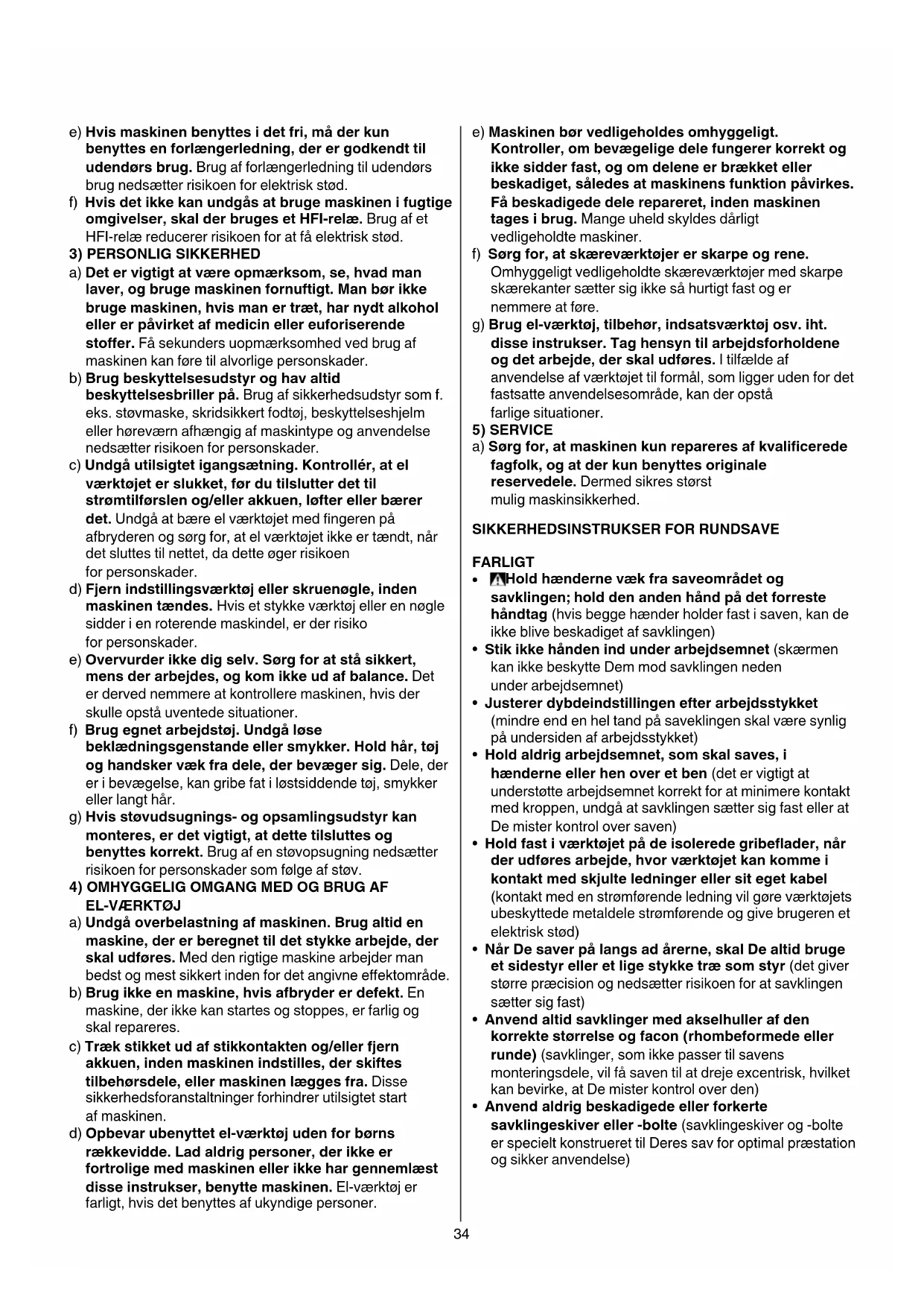 f) Brug egnet arbejdstøj. Undgå løse