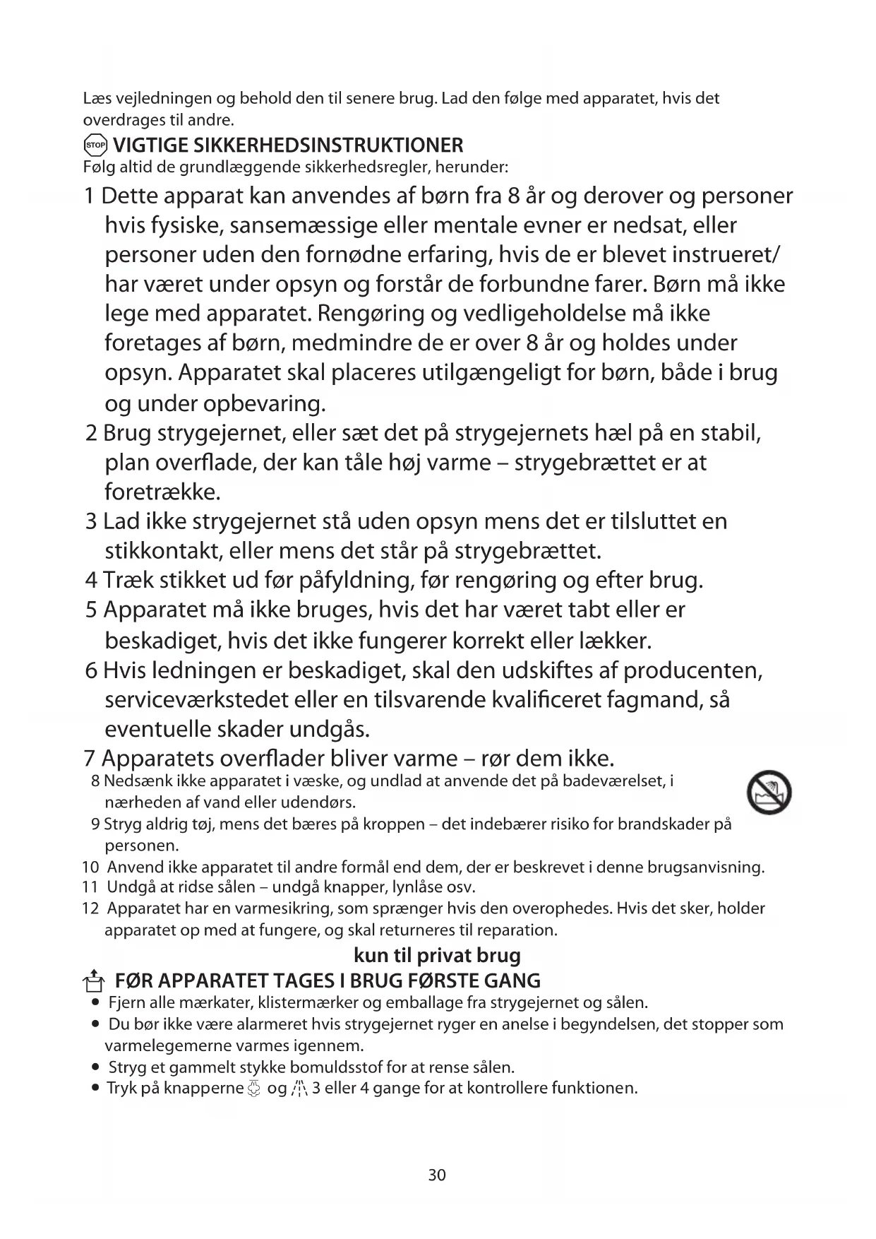 9 Stryg aldrig tøj, mens det bæres på kroppen – det indebærer risiko for brandskader på personen.