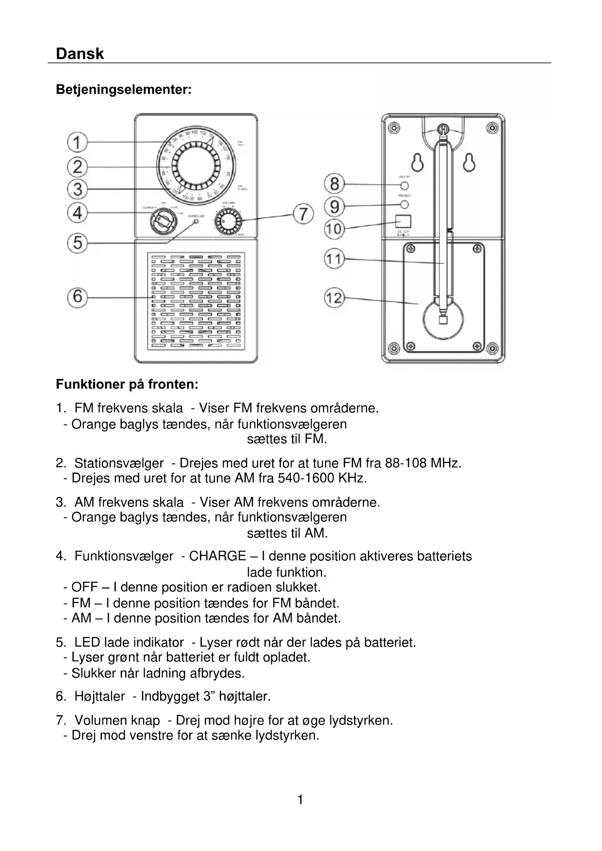 - Bemerk at radio modtagelsen bliver svagere eller lyden kan forvrænges, nag batterierne trænger til opladning.