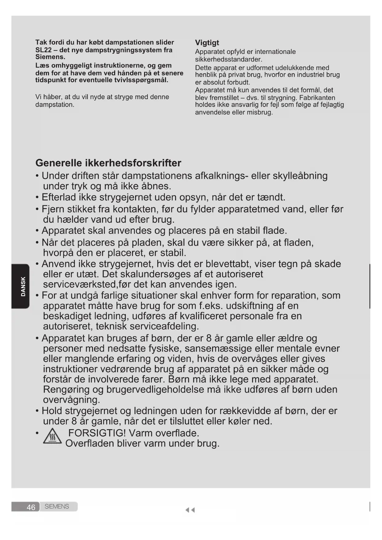 S I E M E N S DANSK Tak fordi du har købt dampstationen slider