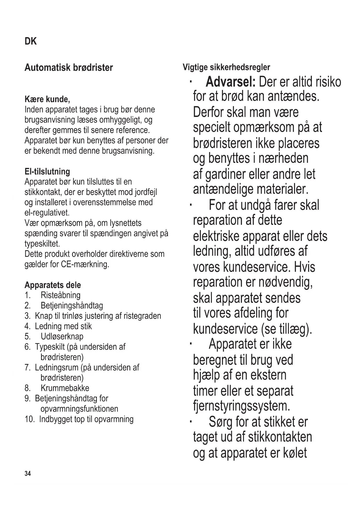∙ Rengør brødristeren omhyggeligt (se
