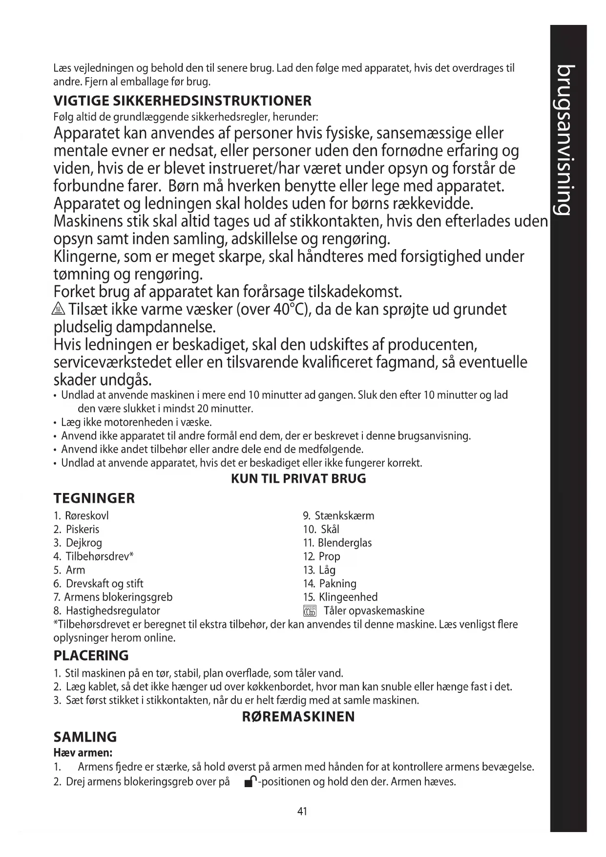 VIGTIGE SIKKERHEDSINSTRUKTIONER Følg altid de grundlæggende sikkerhedsregler, herunder: