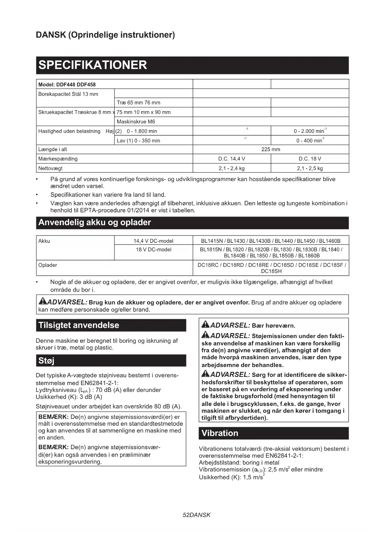 BRUGSANVISNING DDF458 MAKITA