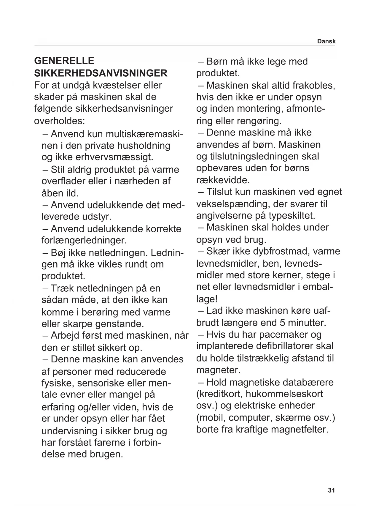 - Sæt sikkerhedsholderen for- oven på maskinen. Dansk35 Dansk BORTSKAFFELSE AF
