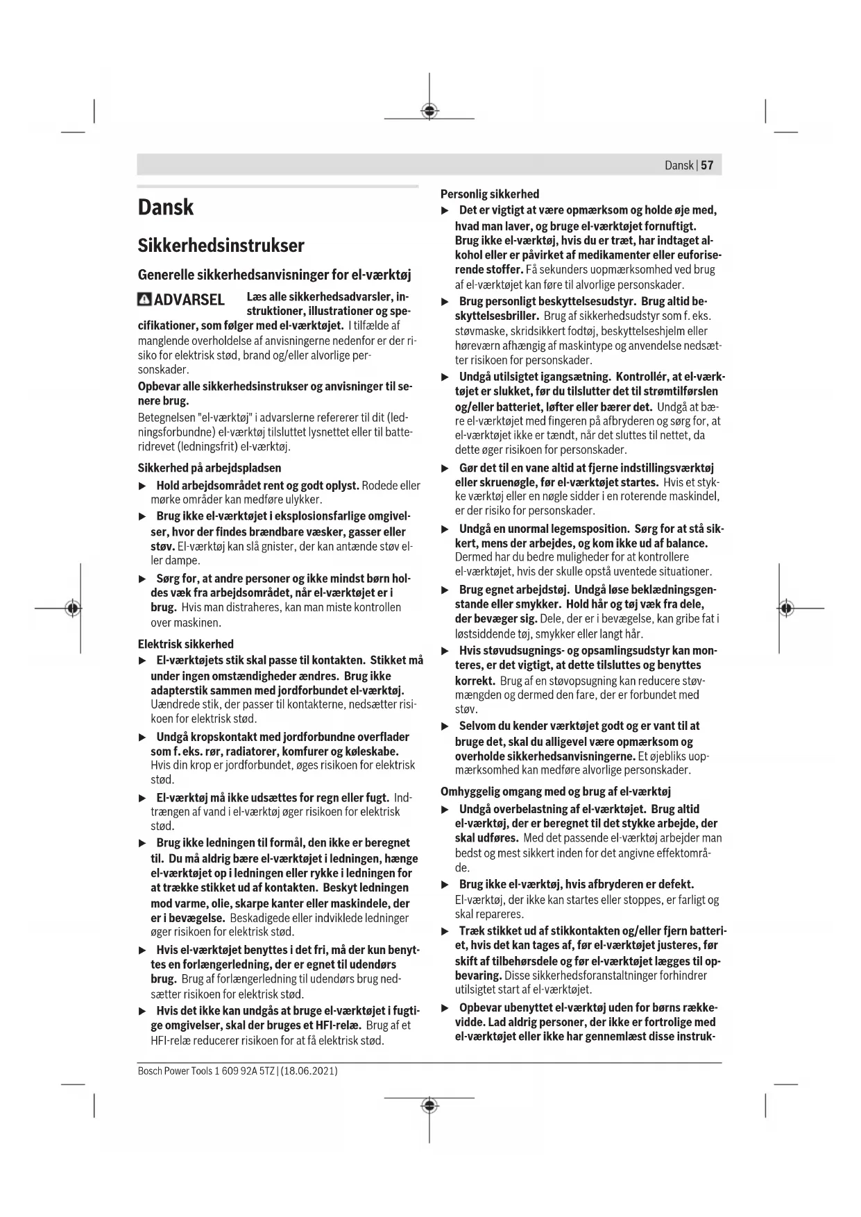 Nm 75/47 75/47 Maks. bor-Ø (1./2.gear) – Murværk mm – 16 – Stål mm 13 13 – Træ mm 82 82 Maks. skrue-Ø mm 12 12 Borepatronens spændeområde 1,5–13 1,5–13 Bosch Power Tools 1 609 92A 5TZ | (18.06.2021)60 | Dansk Akku-boreskruetrækker GSR 18 VE-EC GSB 18 VE-EC Vægt iht. EPTA-Procedure01:2014