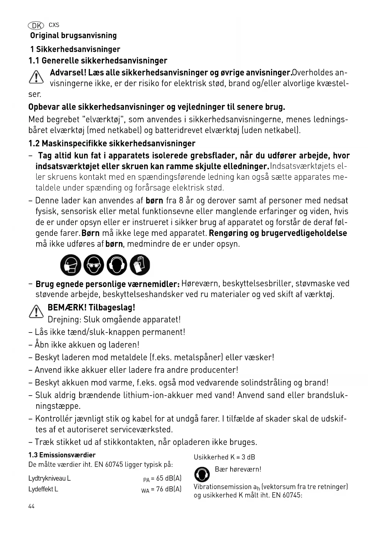 Advarsel! Læs alle sikkerhedsanvisninger og øvrige anvisninger.