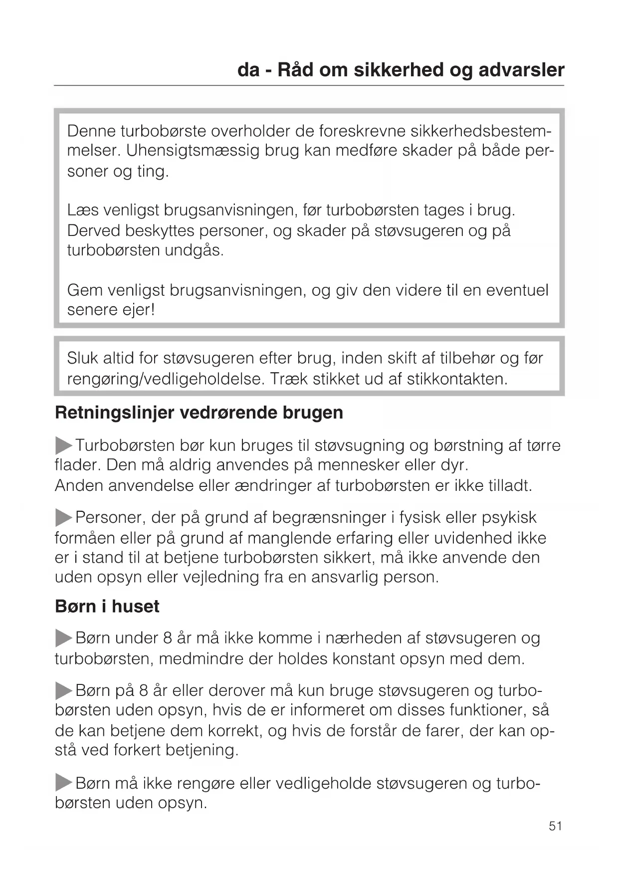 Anden anvendelse eller ændringer af turbobørsten er ikke tilladt.
