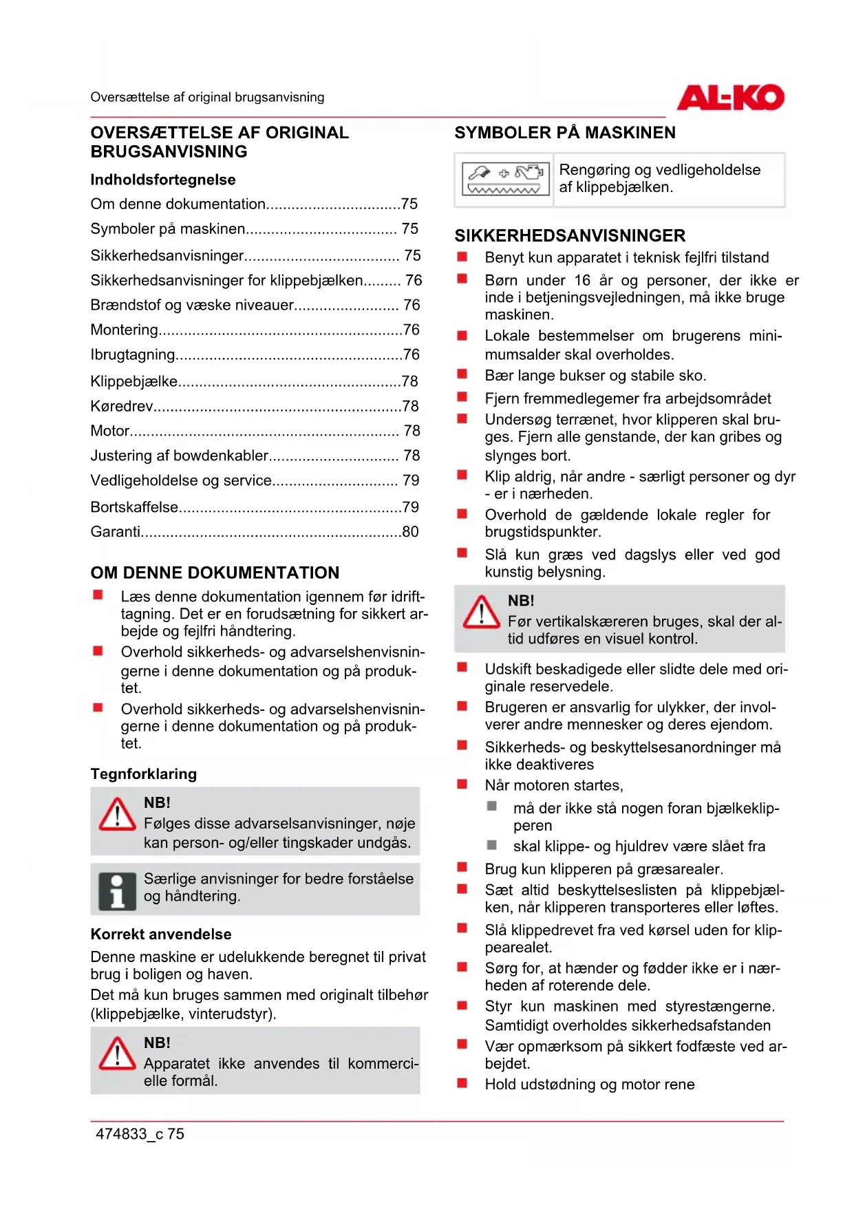 BRUGSANVISNING BM 875 III AL-KO
