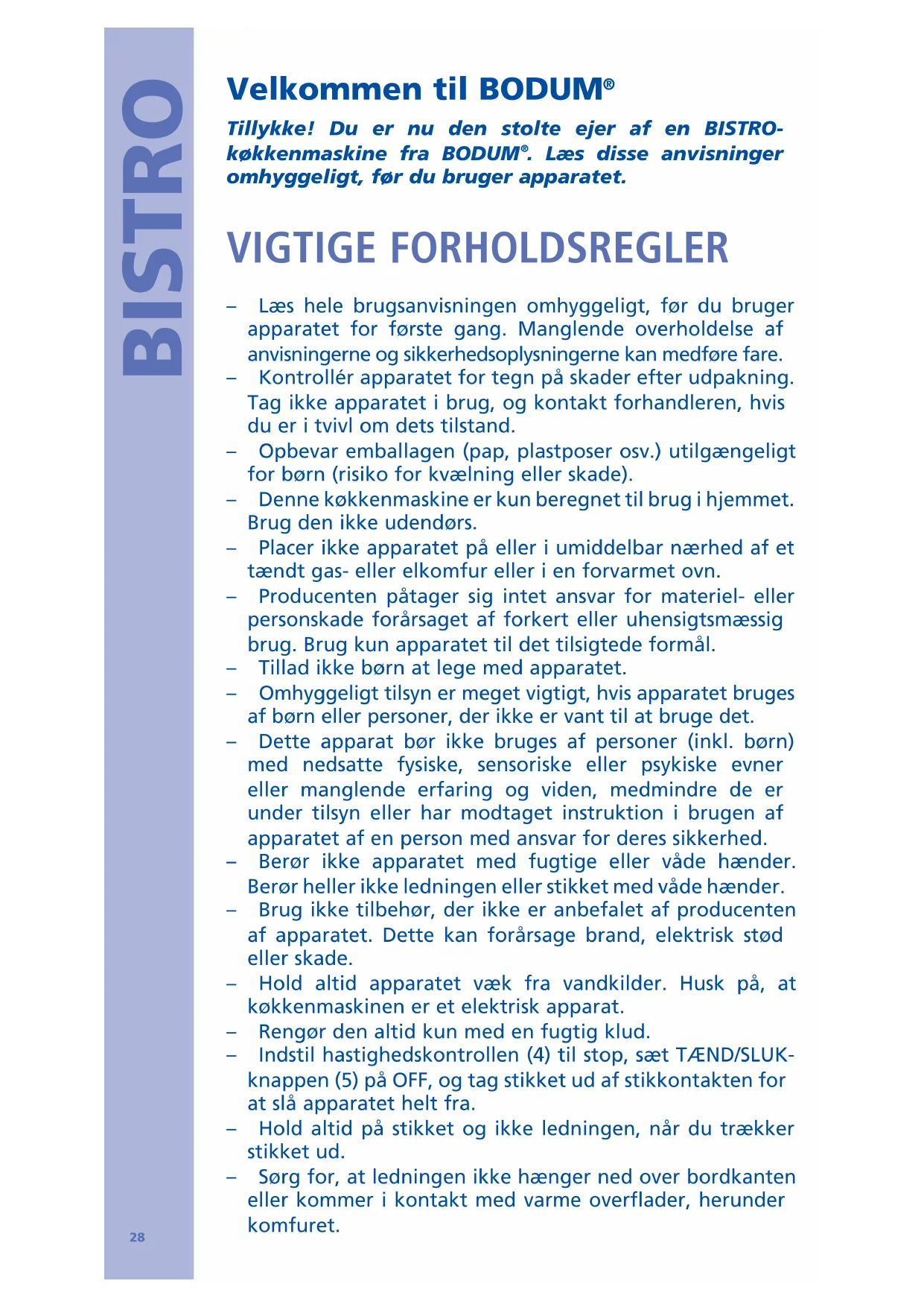 Tillykke! Du er nu den stolte ejer af en BISTRO- køkkenmaskine fra BODUM