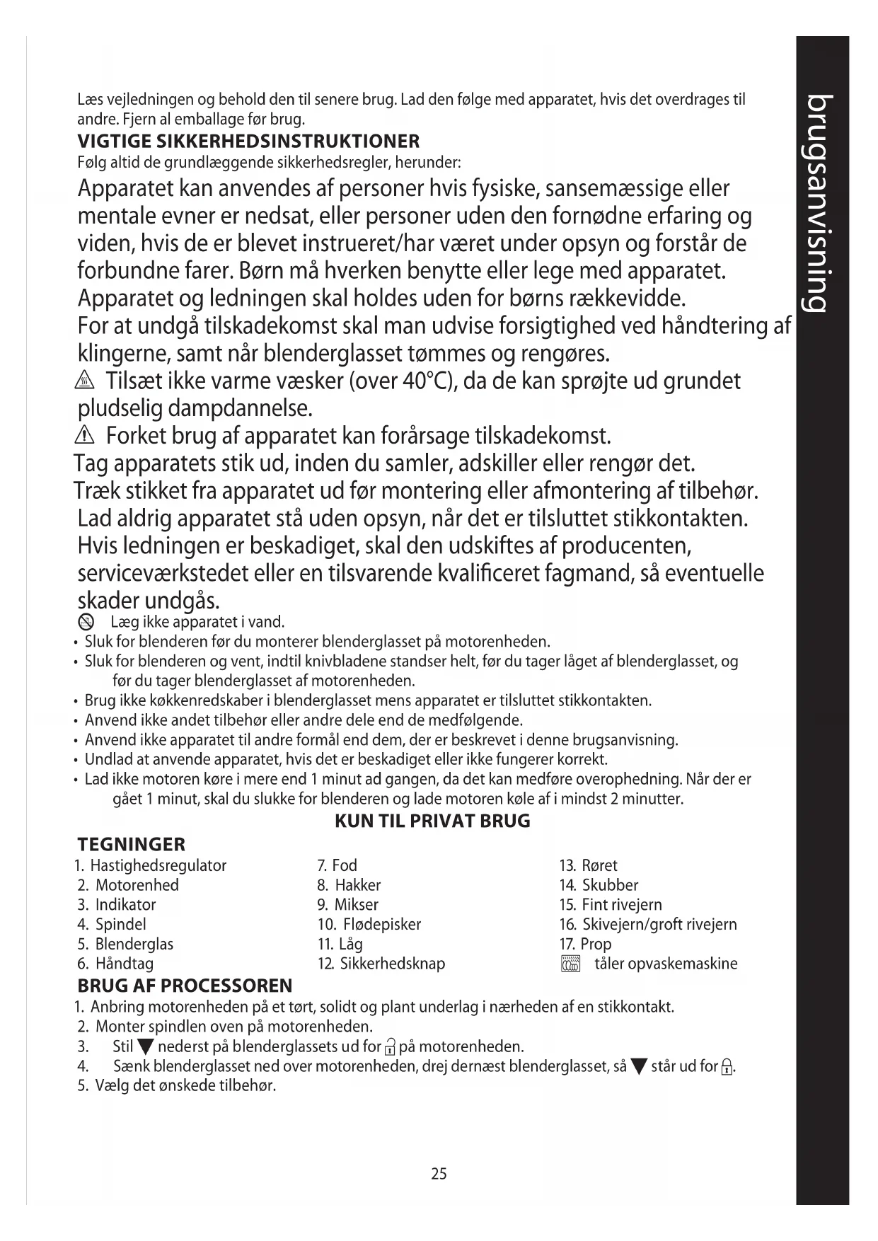 • Brug ikke køkkenredskaber i blenderglasset mens apparatet er tilsluttet stikkontakten.
