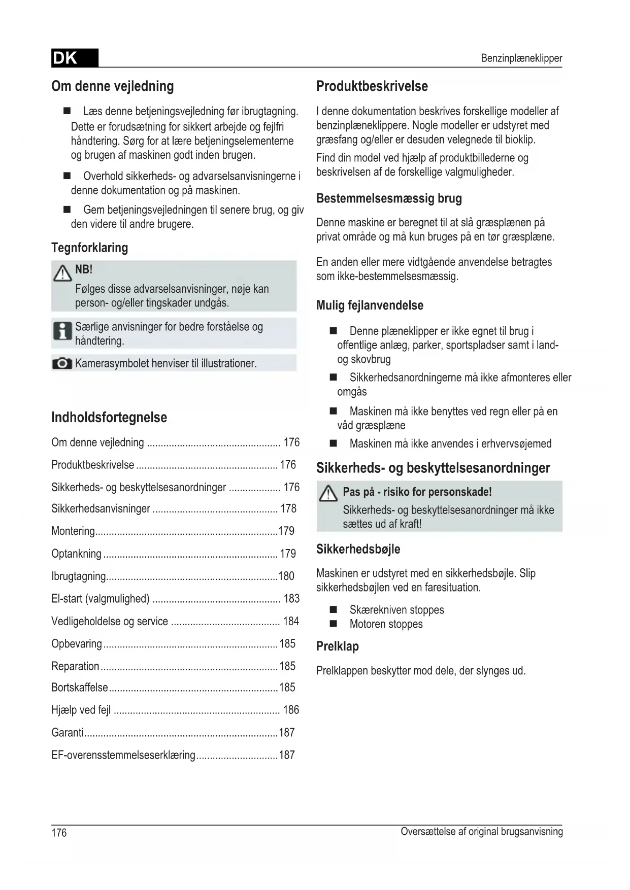 Sikkerheds- og beskyttelsesanordninger 176