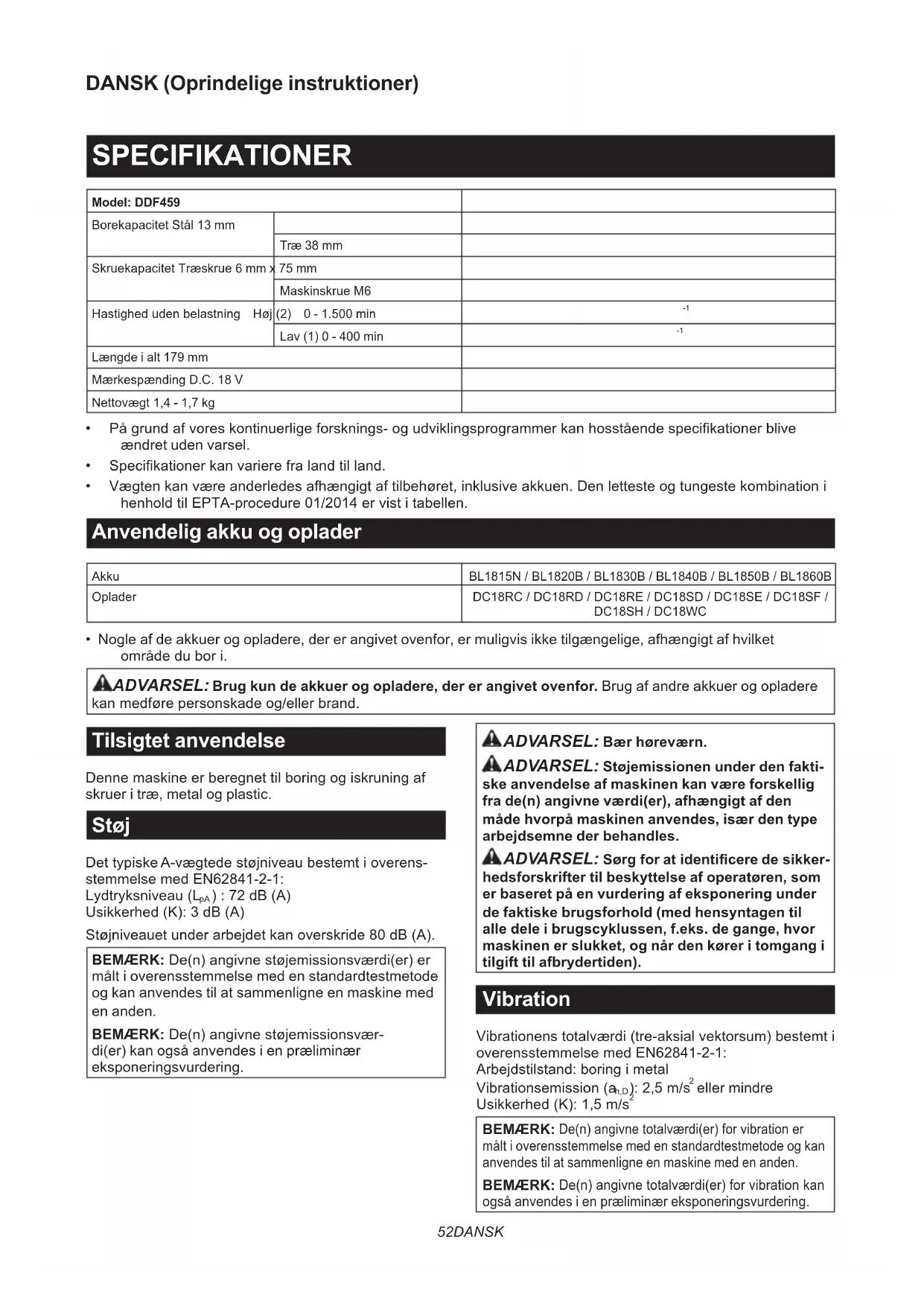 BRUGSANVISNING DDF459 MAKITA