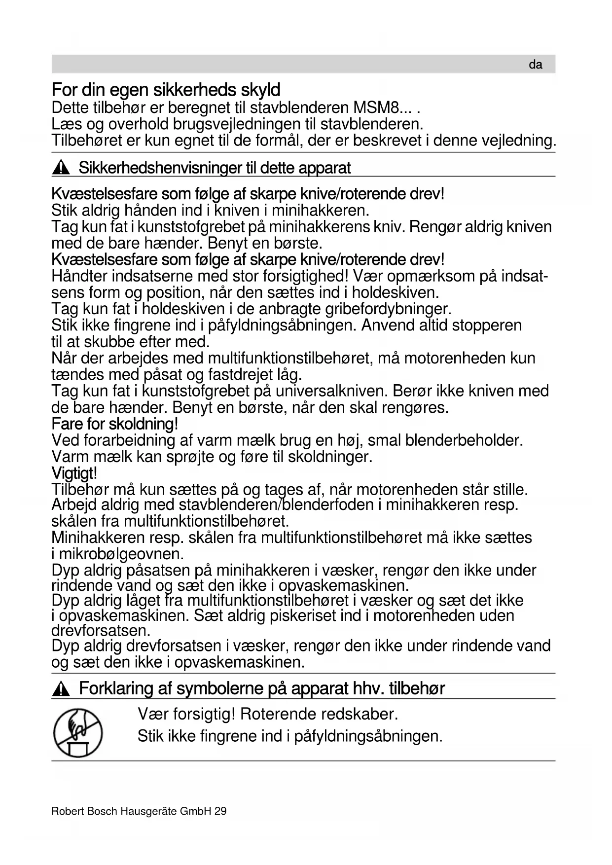Wijzigingen voorbehouden.Robert Bosch Hausgeräte GmbH 29 For din egen sikkerheds skyld