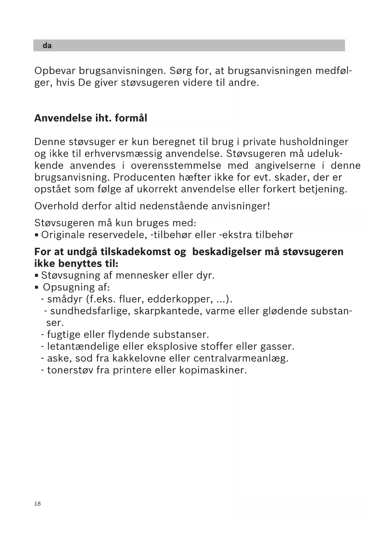 og ikke til erhvervsmæssig anvendelse. Støvsugeren må udeluk-