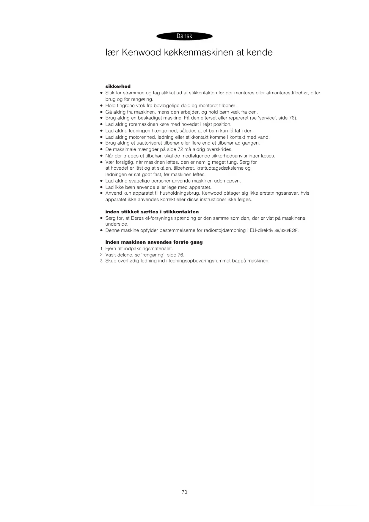 Anvend kun apparatet til husholdningsbrug. Kenwood påtager sig ikke erstatningsansvar, hvis