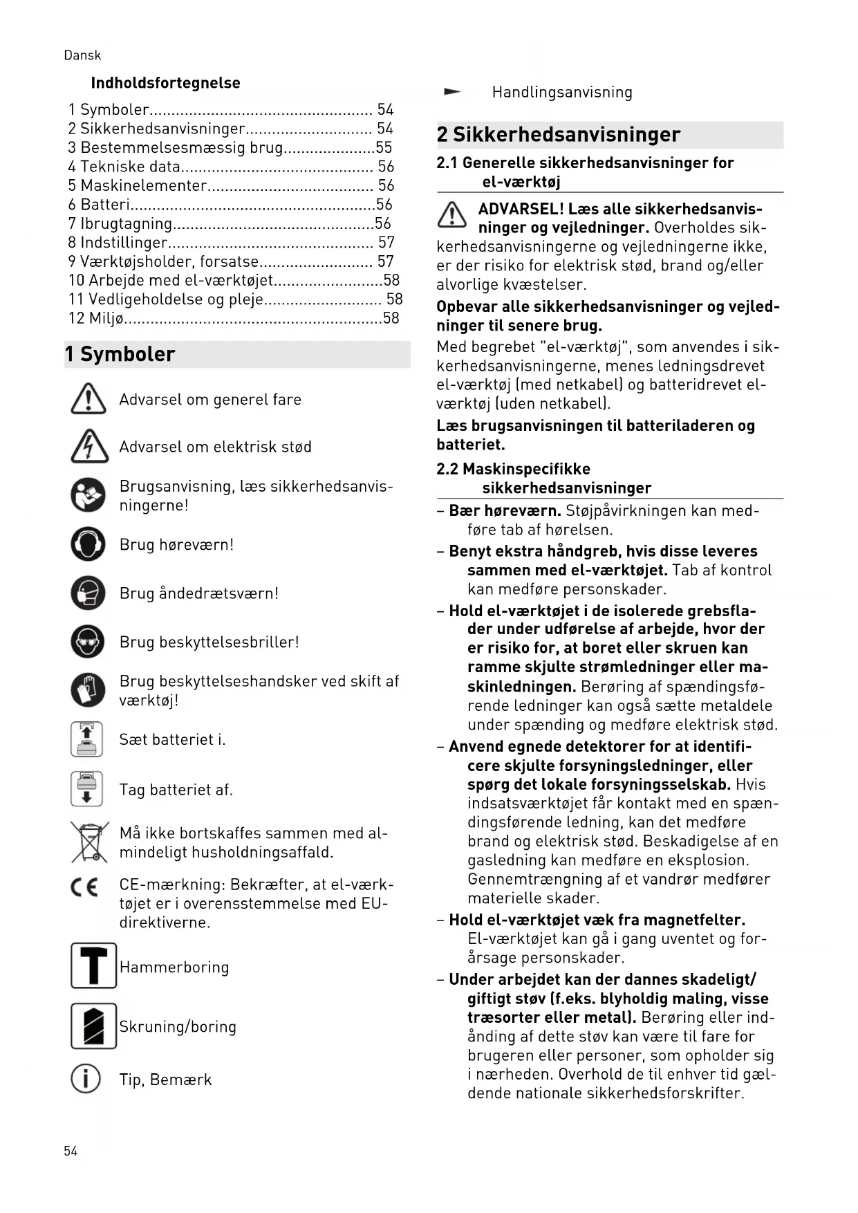 2 Sikkerhedsanvisninger 54