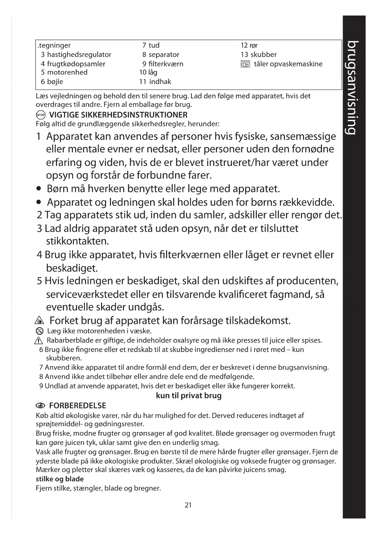 7 Anvend ikke apparatet til andre formål end dem, der er beskrevet i denne brugsanvisning.